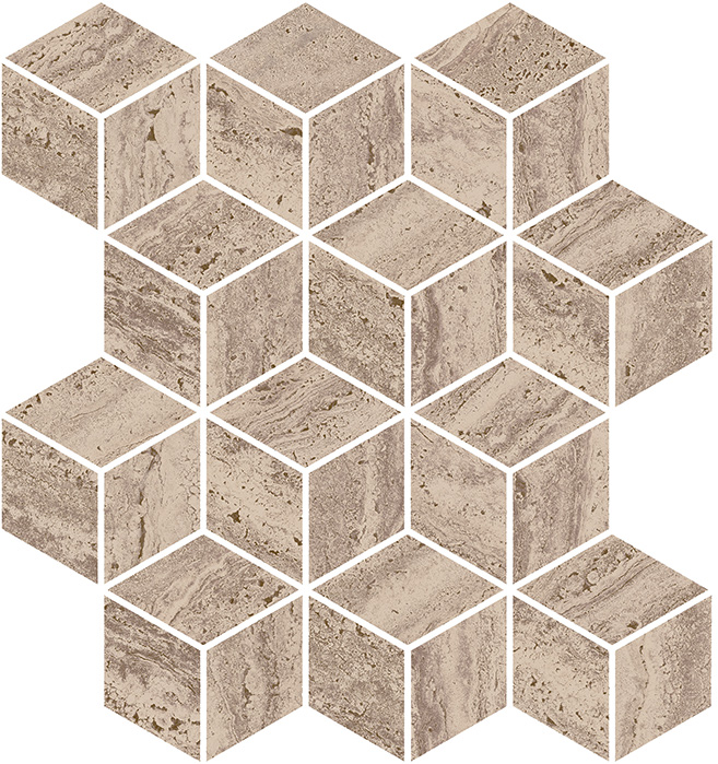 KMD2MSM017BR Про Травертин мозаичный бежевый тёмный матовый обрезной 34,5x37x0,9 декор